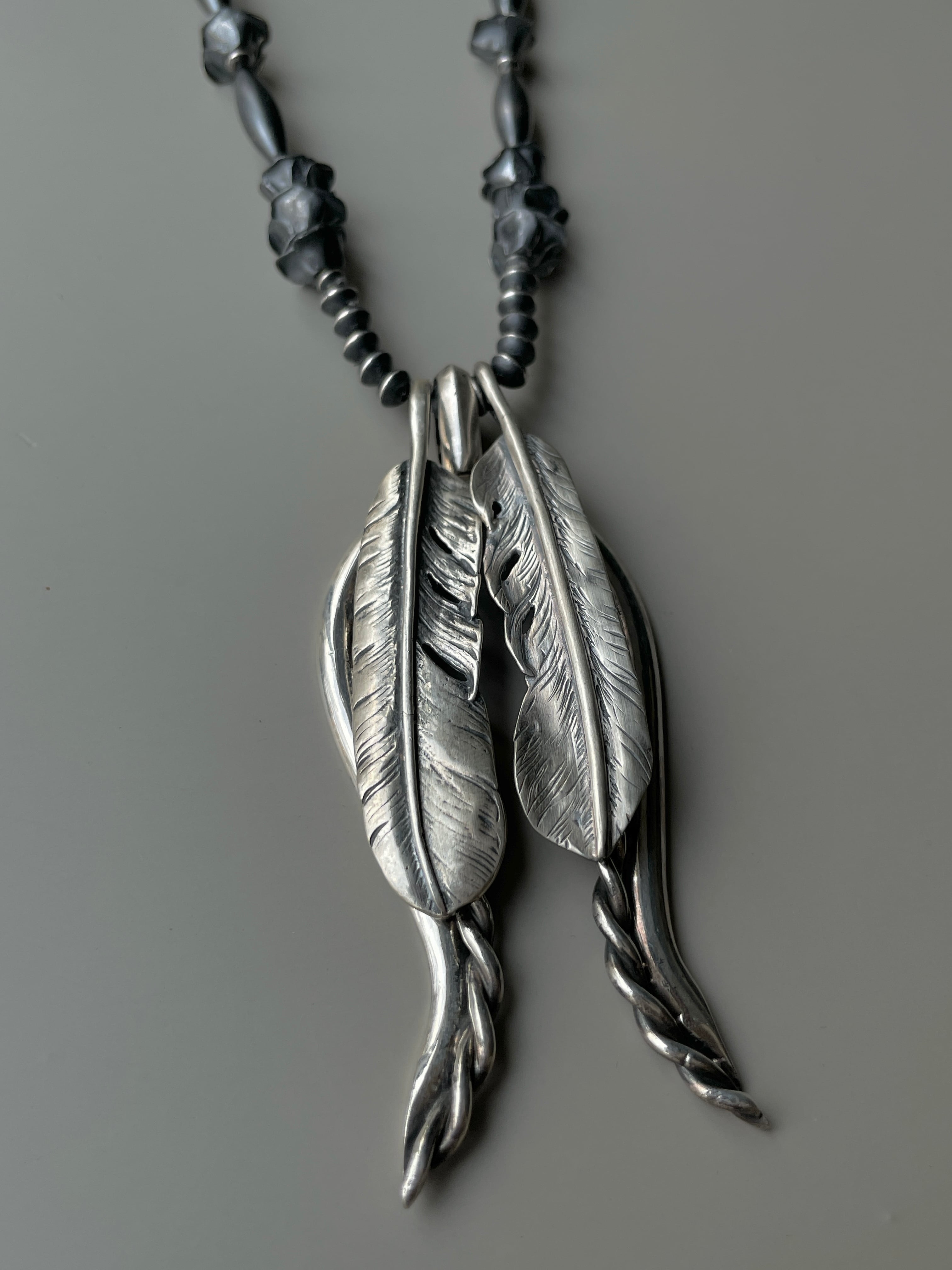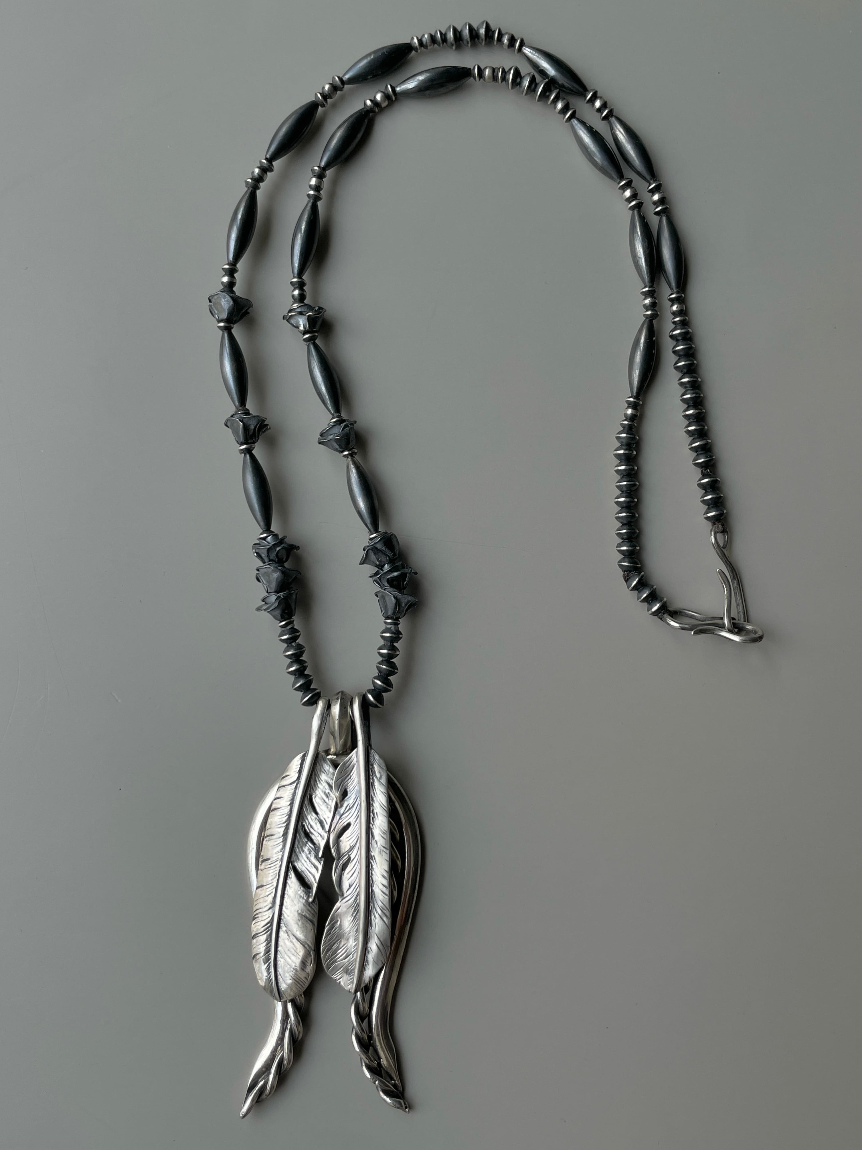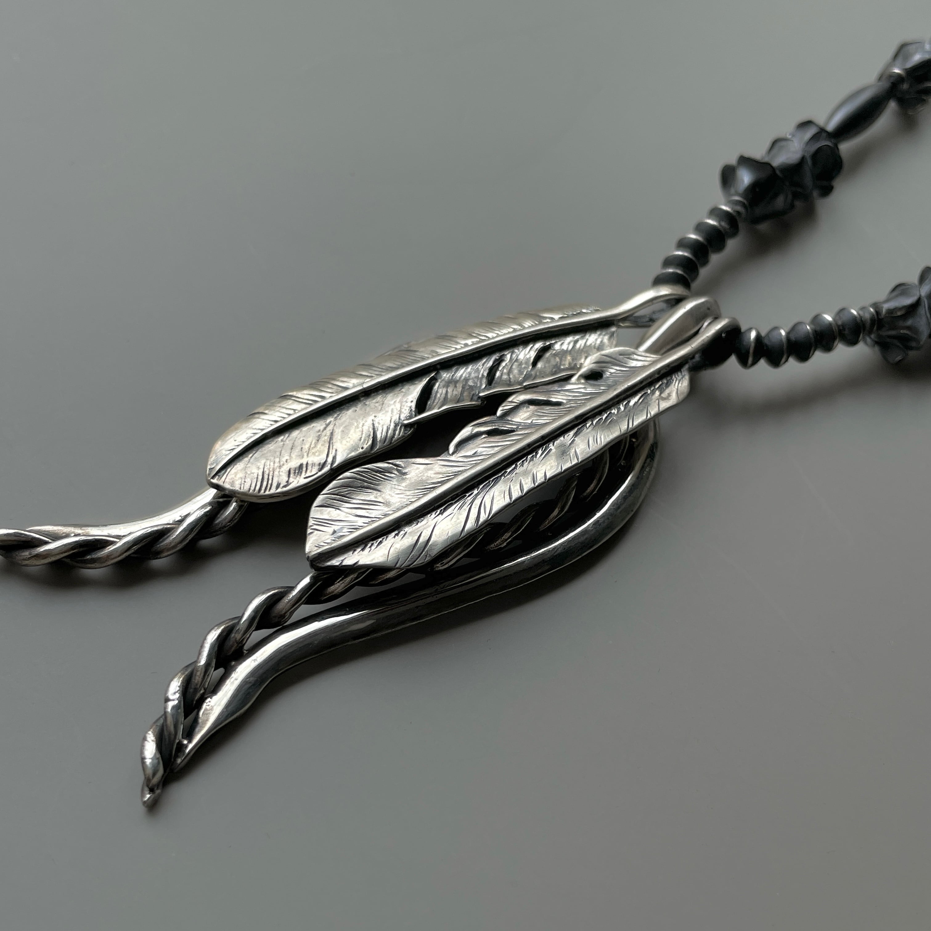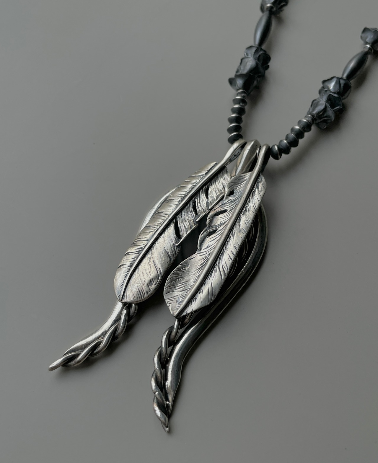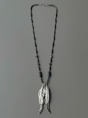 【CUSTOM】 horseshoe pendant feather,right & left STAYTHAM original black perl necklace 60cm -rose-